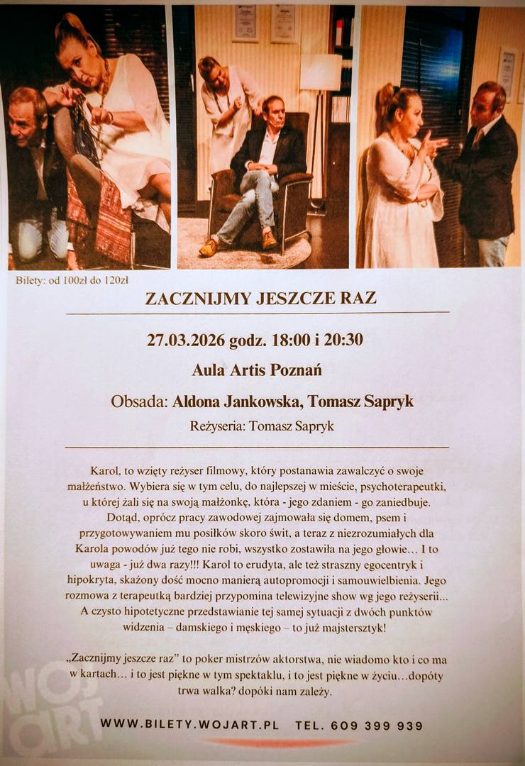 Dnia 27 marca bieżącego roku Związek organizuje wyjazd do Poznania na przedstawienie teatralne „Zacznijmy jeszcze raz”. Szczegóły na zdjęciu reklamowym (klik). Zgłoszenia przyjmujemy w Biurze Zarządu. Zapraszamy